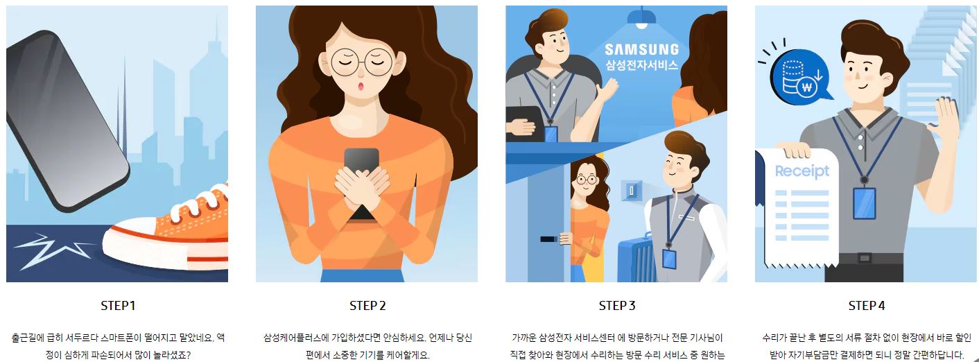 2. 정품 부품과 전문성: 삼성케어플러스를 통해 정품 삼성 부품을 사용한 수리와 갤럭시 기기를 전문으로 하는 인증 기술자의 서비스를 받을 수 있습니다.