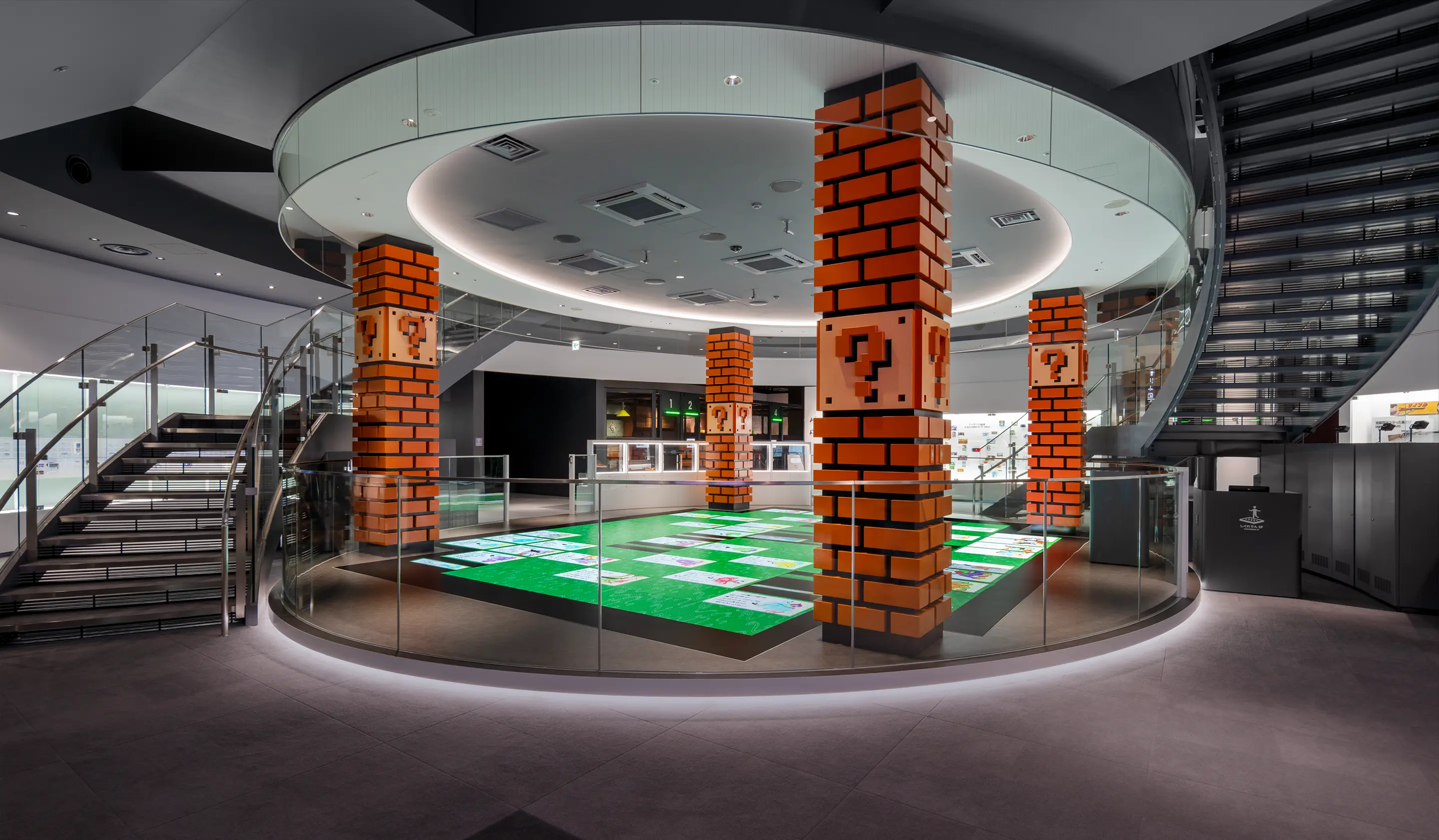 1층은 방문객들이 직접 닌텐도의 게임을 체험할 수 있는 인터랙티브 공간으로 구성되어 있습니다. 여기서는 대형 컨트롤러를 사용해 '슈퍼 마리오 브라더스'를 플레이하거나, 전자 총을 이용한 슈팅 게임을 즐길 수 있습니다. 이러한 체험형 전시는 단순히 보는 것을 넘어 직접 닌텐도의 게임을 즐길 수 있게 해주어, 방문객들에게 더욱 깊은 인상을 남깁니다.