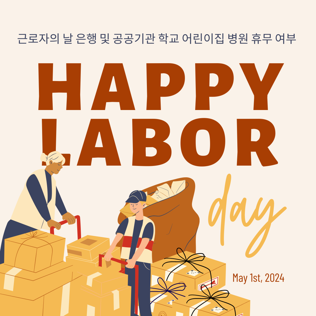 • 근로자의 날은 법정 공휴일이 아닌 법정 휴일로 지정되어 있어, 은행과 공공기관 등 5인 이상 사업장은 의무적으로 휴무해야 합니다.