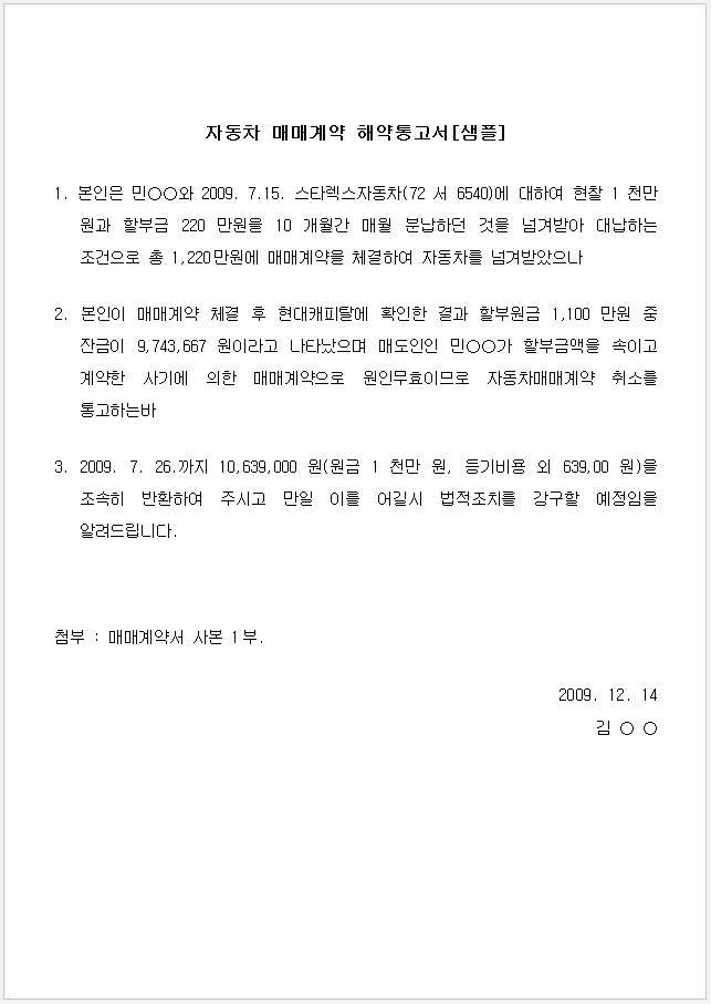 내용증명 샘플