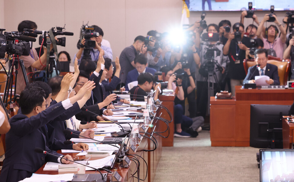 더불어민주당과 조국혁신당 의원들은 표결에 찬성했지만, 국민의힘 의원들은 심사와 토론이 충분히 이뤄지지 않았다며 표결에 불참했습니다. 이로 인해 두 법안은 야당 단독으로 법사위를 통과하게 되었습니다.