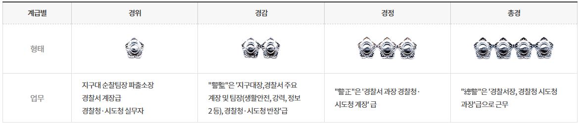 - 경정: 경찰서 과장, 경찰청지방청 계장급 업무를 수행합니다.