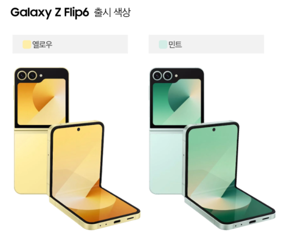 갤럭시 Z 플립6는 실버 쉐도우, 블루, 민트, 옐로우 등 다양한 색상 옵션을 제공합니다. 이를 통해 사용자들은 자신의 개성과 취향에 맞는 색상을 선택할 수 있게 되었습니다.