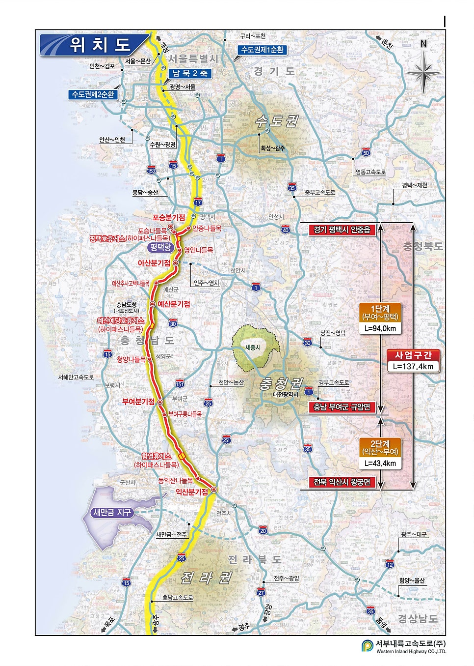 서부내륙고속도로는 경기도 평택시에서 전라북도 익산시를 잇는 총 연장 137.4km의 대규모 도로 프로젝트입니다. 이 중 이번에 개통되는 구간은 평택에서 부여까지의 94km로, 총 사업비 약 3조 2700억 원이 투입된 왕복 4차로 고속도로입니다.