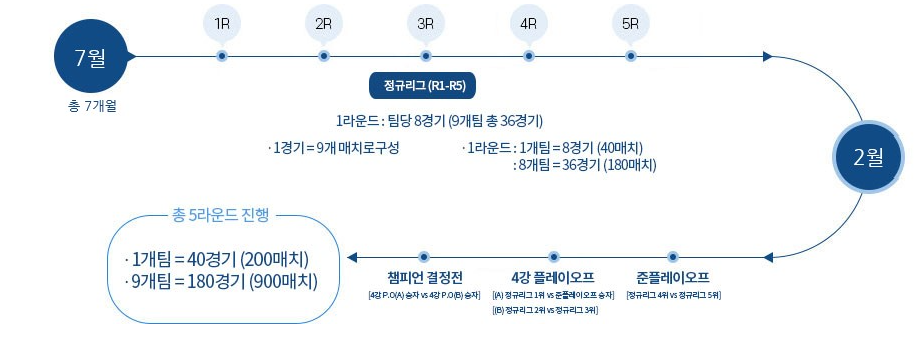 - 총 라운드 : 5R : 정규리그 (R1-R5)