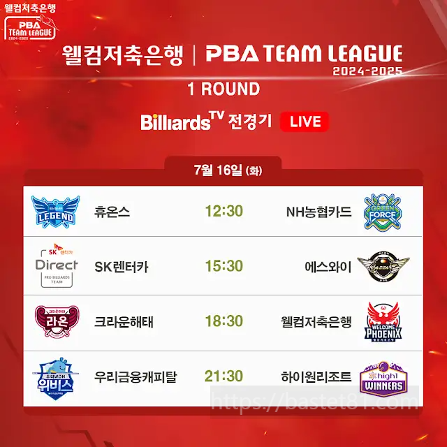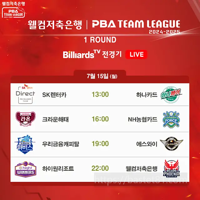 웰컴저축은행 PBA 팀리그가 7월15일 부터 시작되었습니다. 아래 표는 2024-2025 7월15일~16일 경기일정 결과이며, 16일 현재 진행중인 경기는 끝나는대로 업데이트 하도록 하겠습니다.