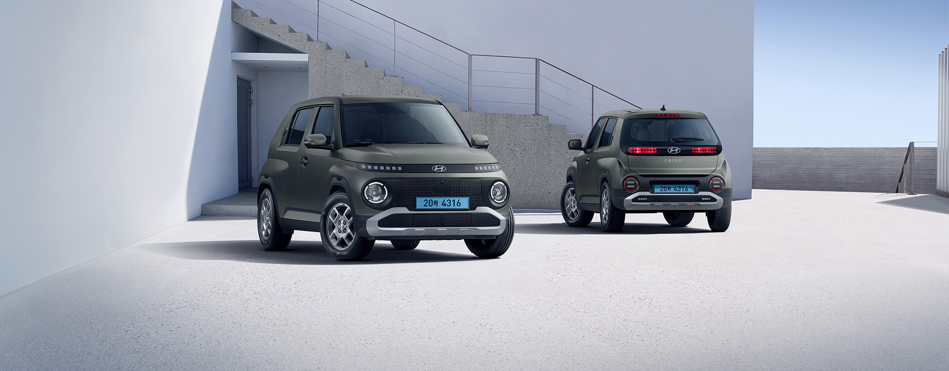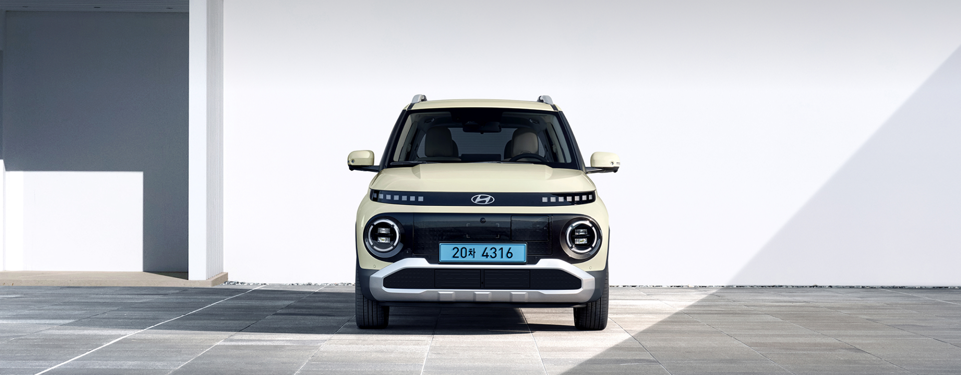 캐스퍼 일렉트릭의 외관은 기존 모델의 다부지고 당돌한 이미지를 유지하면서도 전기차만의 특징을 살렸습니다. 특히 에어로 실버 매트 컬러는 차의 디자인을 한층 더 돋보이게 합니다.
