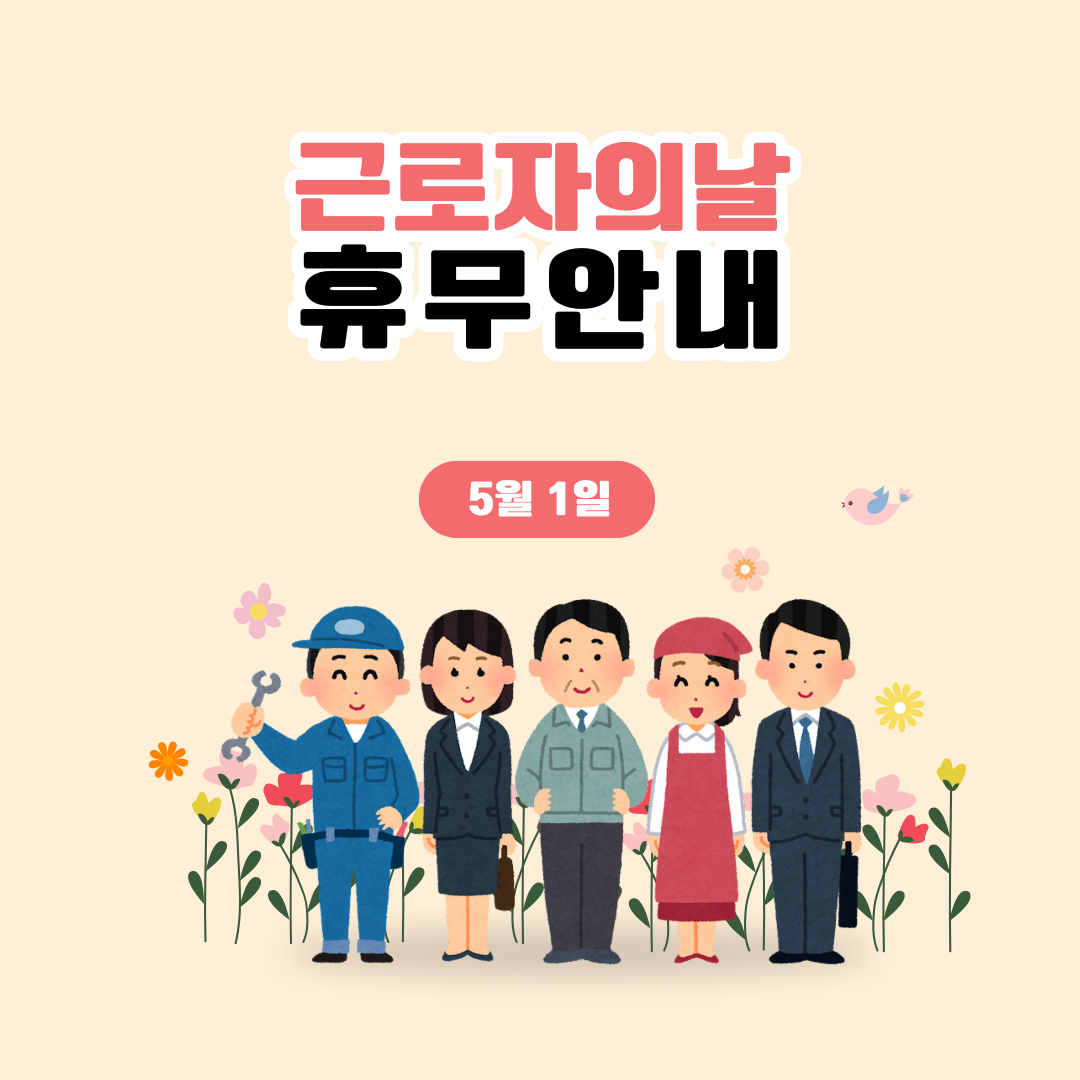 - 학교, 공공기관, 일반 회사 등 대부분의 기관에서 근로자의 날인 5월1일은 휴무일 입니다.