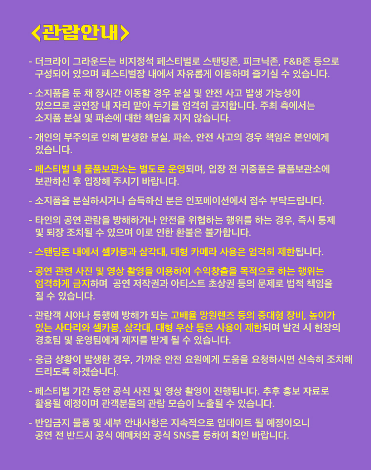 THE CRY ground라는 이름에서 알 수 있듯이, 이 행사는 관객들에게 강렬한 감동과 카타르시스를 제공하는 것을 목표로 하는 것으로 보입니다. '울음'을 연상시키는 'CRY'라는 단어의 사용은 음악을 통해 관객들의 감정을 자극하고 해소하는 경험을 제공하겠다는 의도로 해석될 수 있습니다.