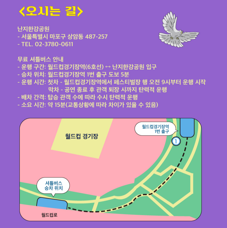 이 행사의 또 다른 특징은 야외에서 진행된다는 점입니다. 난지한강공원의 넓은 잔디밭과 한강의 경치는 음악과 어우러져 특별한 분위기를 만들어낼 것입니다. 특히 10월의 선선한 날씨는 야외 음악 축제를 즐기기에 적합합니다.