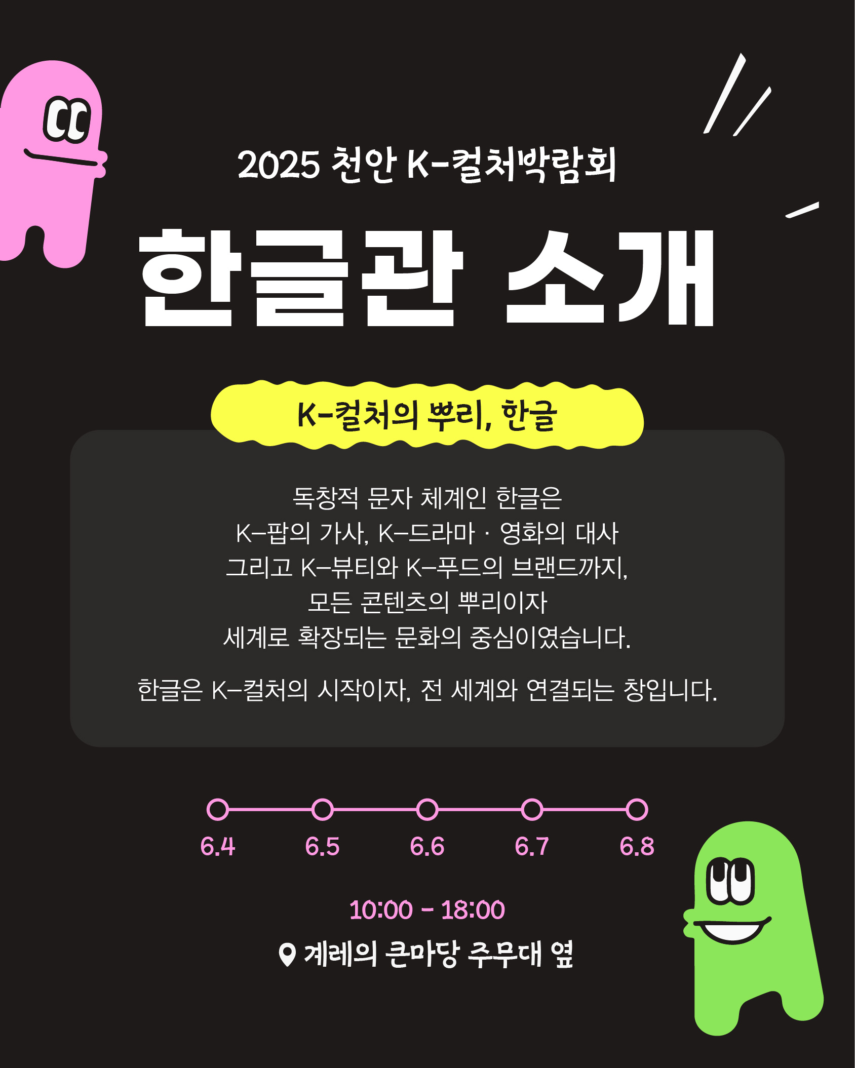 “K-컬처의 다양성과 혁신이 집결된 현장, 천안에서 세계로 뻗어가는 한류의 힘을 직접 경험하세요.”