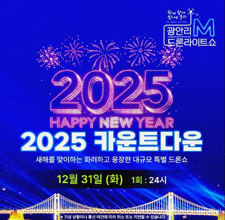 2025년을 맞이하는 그 순간, 광안리 해변에서 함께 희망찬 미래를 꿈꾸며 새로운 시작을 알리는 카운트다운을 외쳐보는 건 어떨까요? 부산의 밤하늘을 수놓을 불꽃과 함께, 여러분의 2025년도 찬란하게 빛나기를 바랍니다.