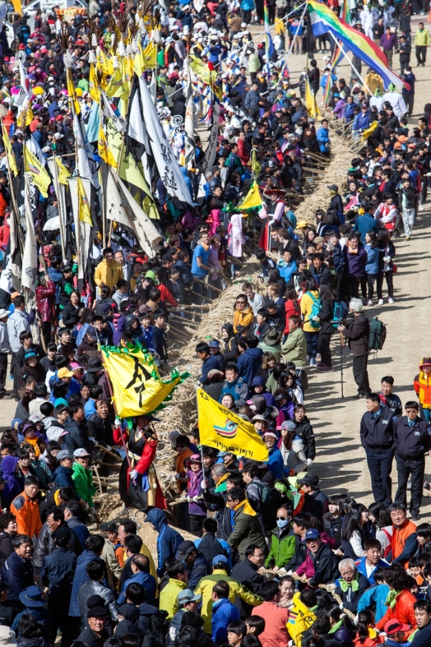 볏짚 4만단으로 약 40여일간 길이 200M 직경 1M 무게40톤에 달하는 세계에서 제일 큰 줄을 제작해 음력 3월 초순경에 1십여만명 참여하여 줄을 당겨오고 있다. 줄을 당기어 윗마을이 이기면 나라가 평안하고 아랫마을이 이기면 픙년이 든다고 전해오고 있다.